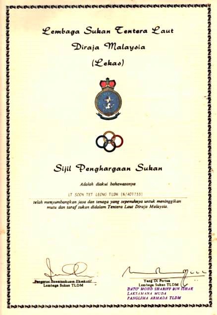 Tat Kong lamented that recognition and rewards in the Royal Navy were better organised and managed; he had not received any awards in his 21 years of service in the RMN. He had participated actively and representatively in hockey for the Malaysian Armed Forces (State Level hockey) and squash for the Navy. He noted that he had also been sailing competitive Optimist and 470 sailboats and sailboards for the Navy for over 10 Years. He was even a qualified Ship’s Diver and served as the Diving Officer for the RMN Naval Dockyard.