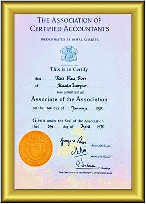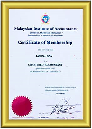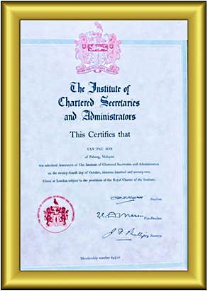Whilst still serving in the MAF, Pau Son through private home studies completed and passed the professional examinations of the Institute Of Chartered Secretaries & Administration (ICSA), Association of Chartered & Certified Accountant (ACCA) and the Chartered Institute of Management Accountants (CIMA) in the shortest time allowed for by the professional bodies in the United Kingdom and without failing in any of the 30 papers. This is a feat totally reflective of Pau Son’s personal drive and determination throughout his adult life.
