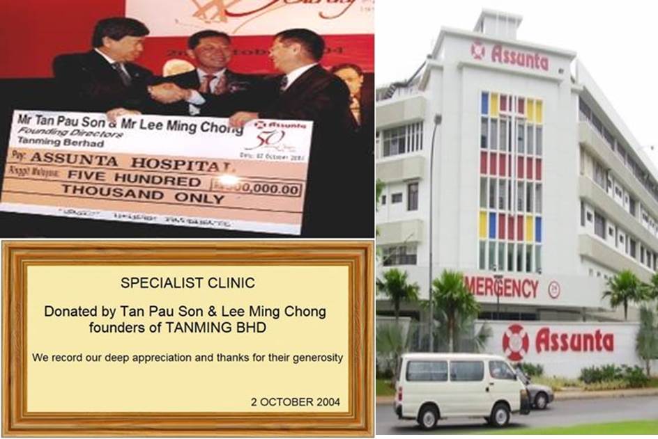 Tan Pau Son had built a fortune for himself starting from zero. A true rags to riches story, and of course his is a very successful story after having served the Armed Forces. Today, in giving back to the society which had enabled him to build his housing development business, he had made numerous donations and contributions as his own way to repay society. Some of his donations are as follows:-